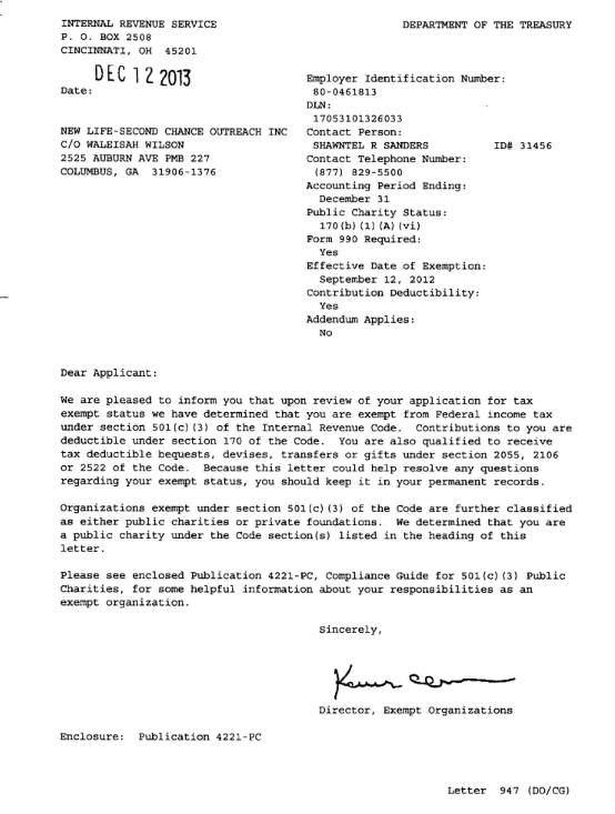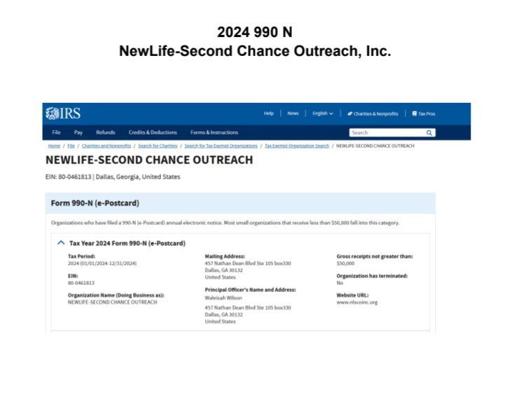 NewLife-Second Chance Outreach, Inc. is recognized by the IRS as a 501(c)(3) public charity organization. Donations are subject to being tax deductible in the US. Our federal tax ID # is 80-0461813. NewLife-Second Chance Outreach, Inc. is registered with the Charities Divisions of the States of Georgia (Lic. #CH010940) and Alabama (Lic. # EC-0792) and with Candid (formerly GuideStar).