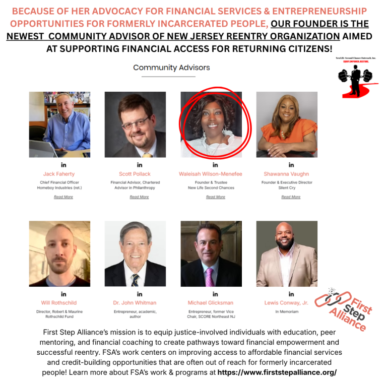 Founder invited to be advisory board member of New Jersey Based Org that equips formerly incarcerated people with education, peer mentorship and financial coaching to create pathways toward financial empowerment and successful reentry.