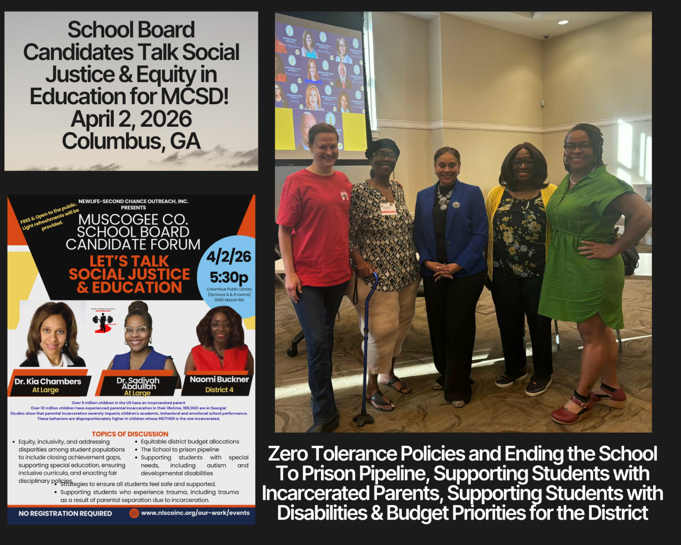 Thanks to all who joined us to hear from at large candidates, Dr. Kia Chambers and her opponent, Dr. Sadiyah Abdullah on why they are the best for the seat and their priorities in addressing and supporting social justice and equity in the Muscogee County School District.