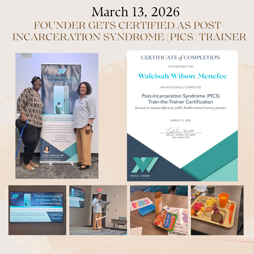 Our founder, attended a 4-hour train-the-trainer training, provided by Dr. Nicole Wiesen, that equipped facilitators, social workers, peer leaders, clinicians and interdisciplinary teams with a structured framework for understanding the physical and mental impacts of incarceration, recently identified as Post-Incarceration Syndrome (PICS).